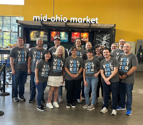 Columbia volunteers work with our partners at the Mid-Ohio Food Collective at their Mid-Ohio Market event. During the event, team members have the opportunity to donate personal hygiene items and canned goods. They also help register and check out market shoppers and help them pack their items.